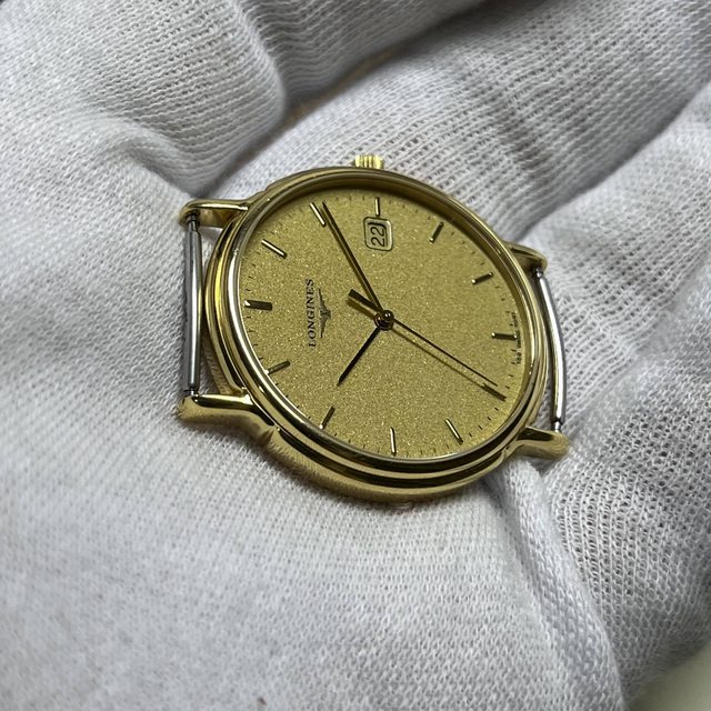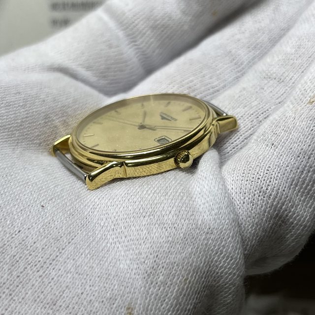 3.浪琴金面大三針石英錶 4900$不議價 錶徑含龍頭35,鍍金,無嚴重掉金 無附錶帶,原廠錶扣狀況佳,日期可快調 手錶有使用痕跡等,品相如圖