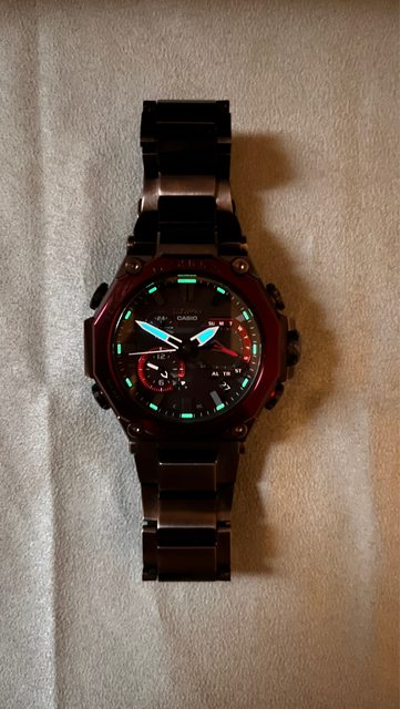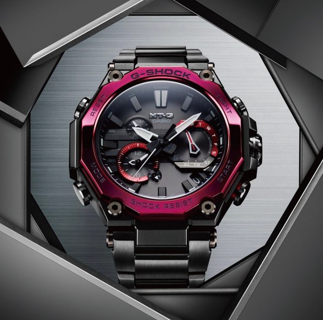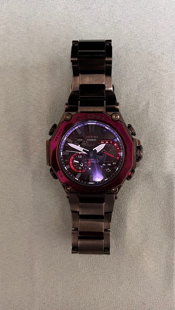 卡西歐除MRG外,次頂級的MTG系列,少見的深酒紅色,實錶更接近葡萄紫的顏色,除常見