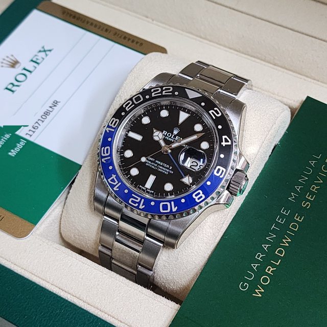 【售】:ROLEX 勞力士 116710 BLNR 藍黑雙色陶瓷旋轉錶圈 GMT藍色指針 雙時區 放大
