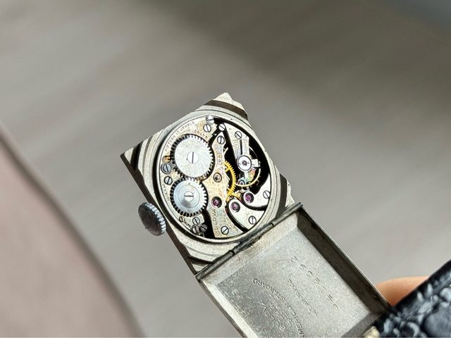 銀質雕花錶殼、放射狀面盤與與近百年前特有的時標字體,最特殊的地方莫過於可掀開的