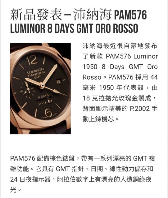 標題[賣錶] PANERAI 沛納海 PAM576 玫瑰金 8日動顯