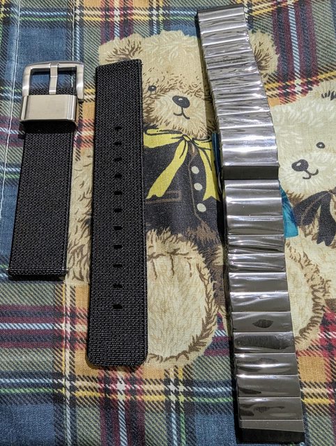 再加送照片上全新黑色竹節鋼帶&全新黑色尼龍帶各一