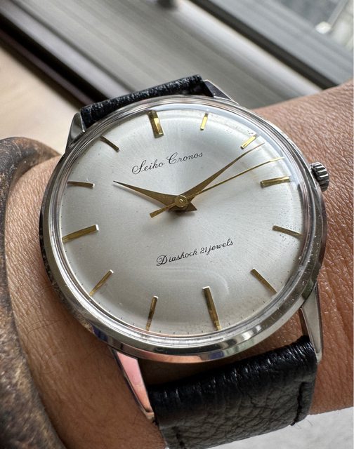 2.老精工Seiko cronos,約1960年代生產,手上鍊機芯,簡單大三針漂亮面盤,以70年左
