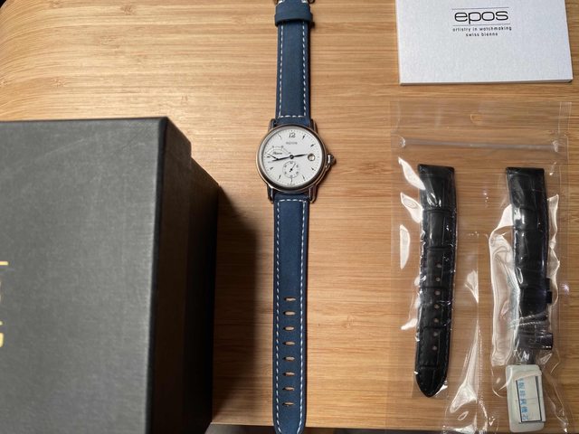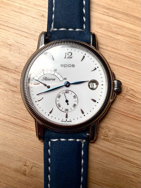 商品:Epos絕版白瓷小秒針手上鍊皮帶機械錶