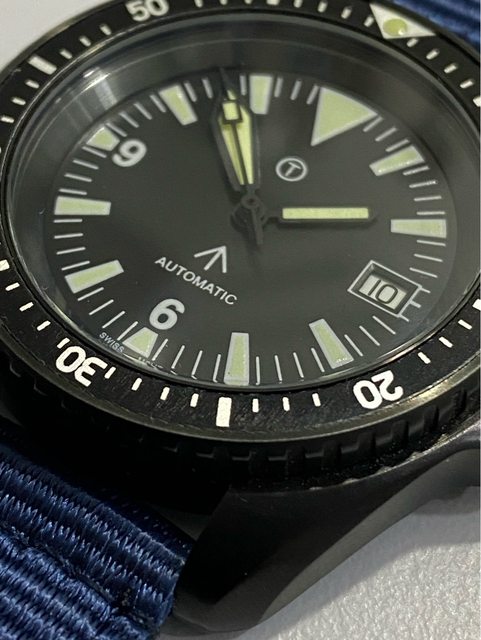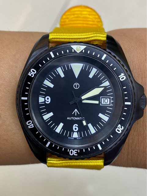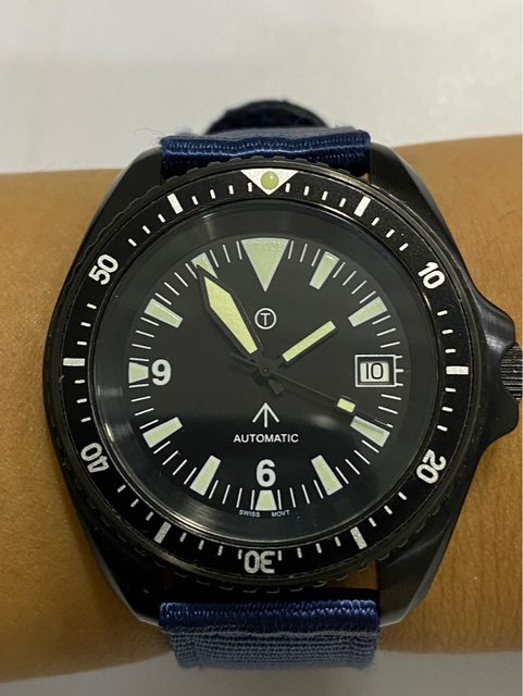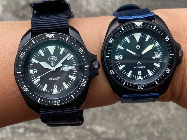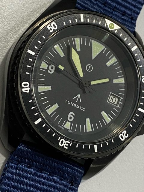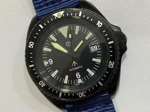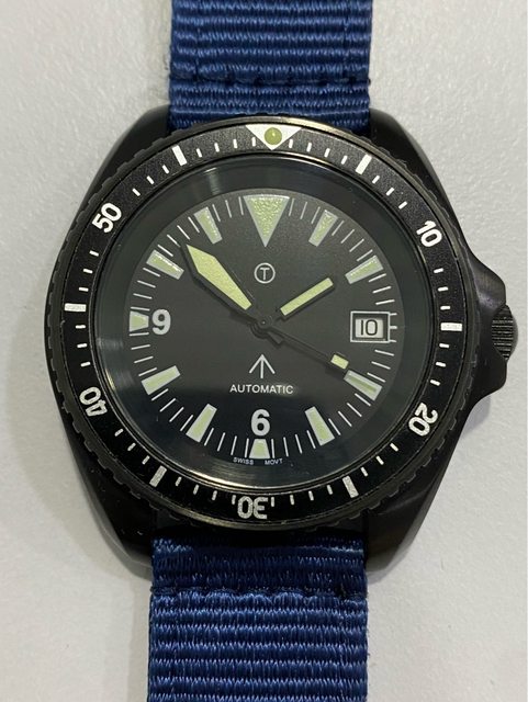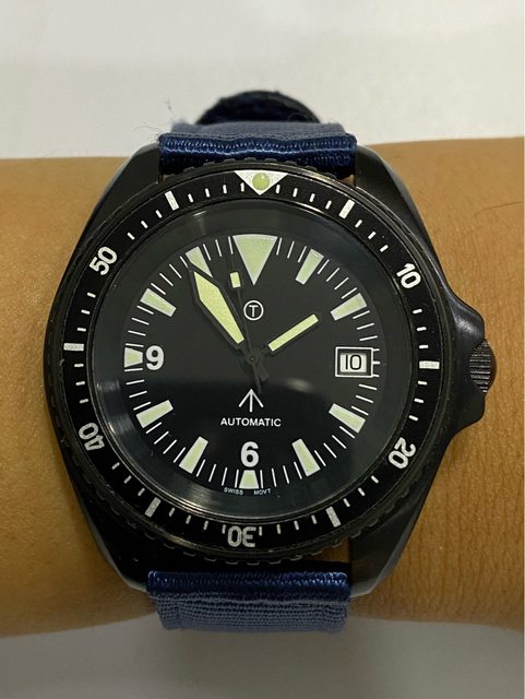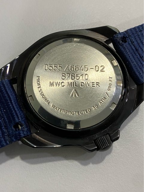 【商品名稱】MWC 軍錶 【商品價格】5060元(含店到 【新舊程度】外觀約9成新 【附件】單錶一顆,帆布錶帶*3 ————————————————— MWC 早期還在用ETA機芯時候的商品, 錶殼經過 PVD 處理,PVD 表面處理通常在特種 部隊、反恐部隊和各種秘密行動的軍事合約中指定,此款應該是致敬CWC 給英國舟艇特勤 團(Special Boat Service)配戴的手錶,現在的MWC auto 皆已更換 日本miyota機芯, 絕版美品,不議價。 外殼:不鏽鋼黑色不反光 PVD 錶冠:旋入式 防水性:30ATM/300m/1000ft 機芯:ETA2824 尺寸:寬度包含龍頭 45 mm 走時正常,換曆功能正常, 當日常生活上山下海的工具錶非常合適 —————————————————- 匯款後店到店,無面交服務