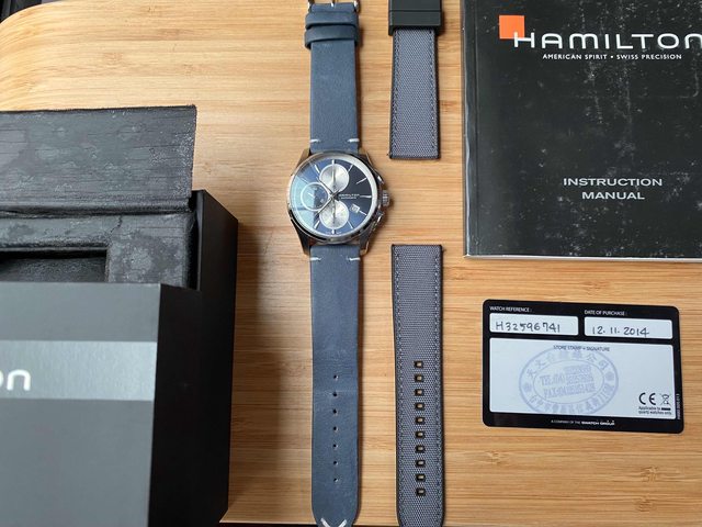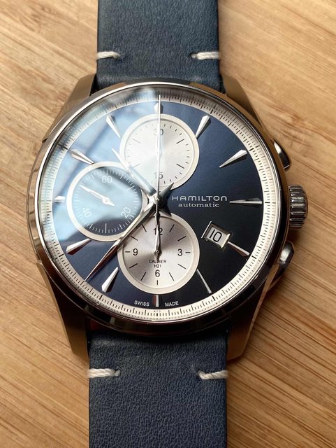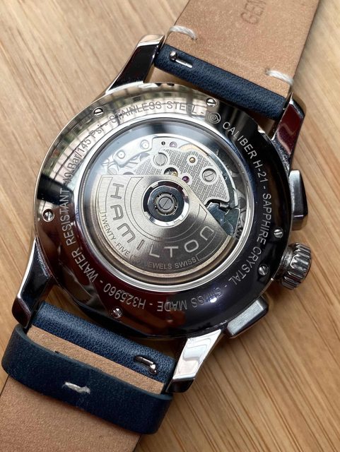 商品:Hamilton漢米爾頓藍面計時皮帶機械錶