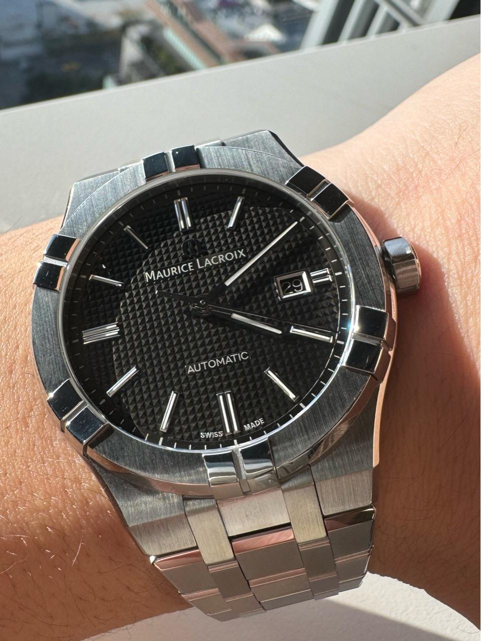 : 品牌:艾美 Maurice Laceoix Aikon灰黑面鋼帶(全新錶扣膜未私)(新式錶盒、新式