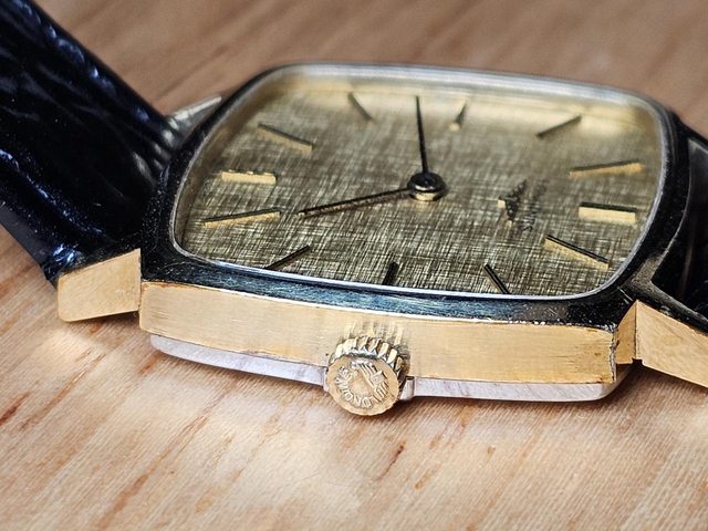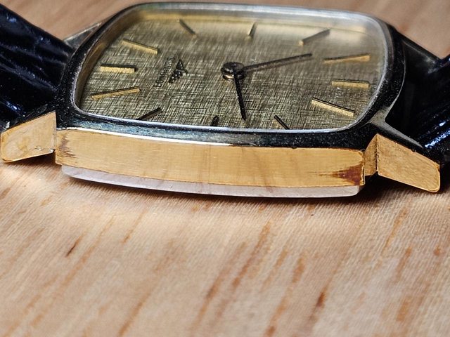 二手收藏品,布紋錶面,枕型錶殼,立體棒狀時標。看得出年代感,錶殼尺寸約30 x 30