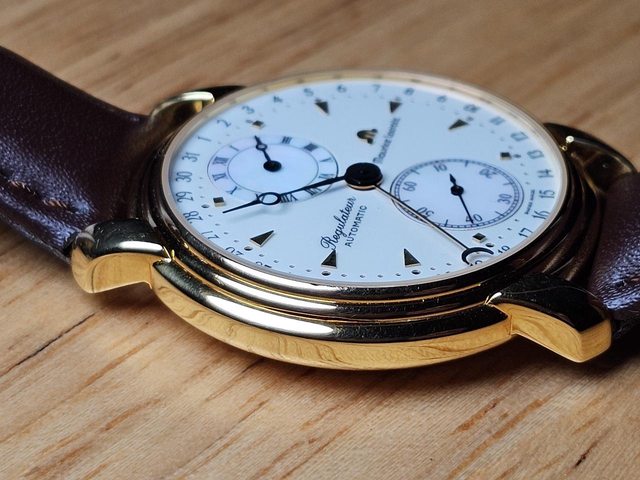 二手收藏品,艾美Regulateur錶款。寶璣針、立體Logo、指針式日期,錶面時針與秒針盤