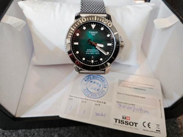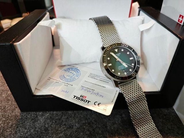 品牌名稱:Tissot 手錶型號:Seastar 1000 綠(機械) 購買年份:2021/01/01(如保卡) 欲售金額:$15000 所在地:桃園青埔 隨附物件:保卡、完整外盒 聯絡方式:Lind ID: Tinais51 物件描述:購入後少使用,約8新