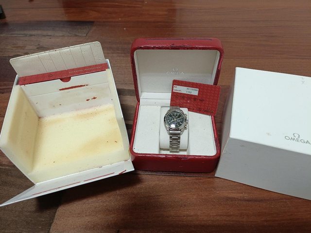 品牌名稱:OMEGA speedmaster 手錶型號:3513.50 保卡日期:無 欲售金額:40000 物品所在地:桃園中壢 隨附物件:原廠盒裝以氧化 保卡 聯絡方式:站內信 物件描述:面盤輕微氧化 錶殼錶帶有些使用痕跡 今年初以保養洗油 走時計時正常