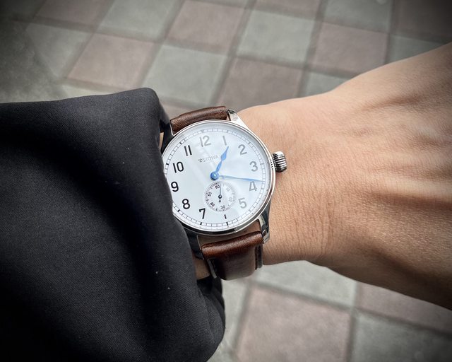 溫潤的白色面盤 小秒針面盤 搭配藍鋼大三針