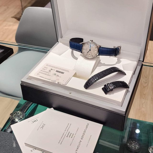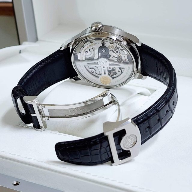 【配件】:IWC原廠錶盒 錶盒有自然分解現象,保證卡,說明書,原廠鱷魚皮錶帶 在。