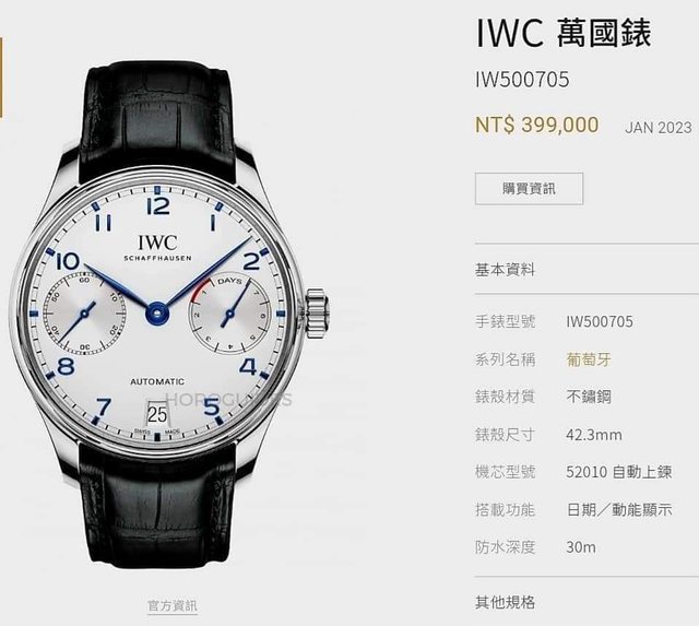 【售】:IWC 萬國錶 IW500705 大葡萄牙系列 白面+藍鋼指針 7日動能存放顯示 52010型