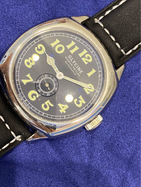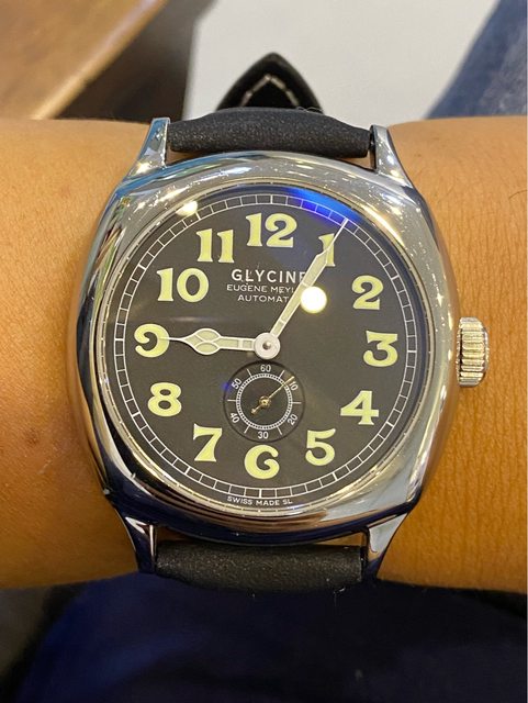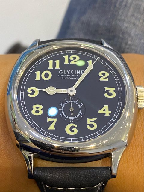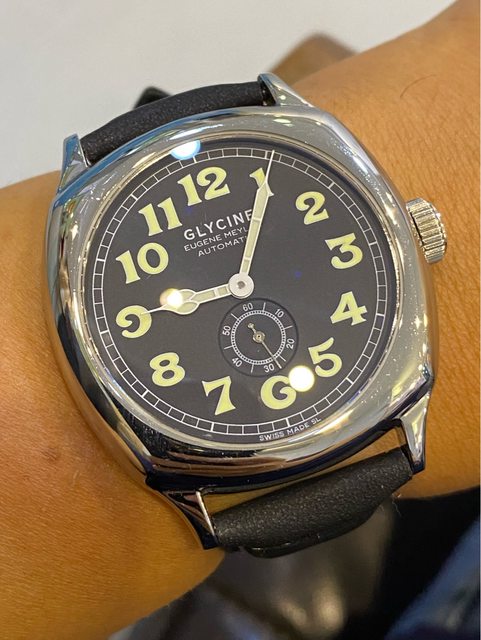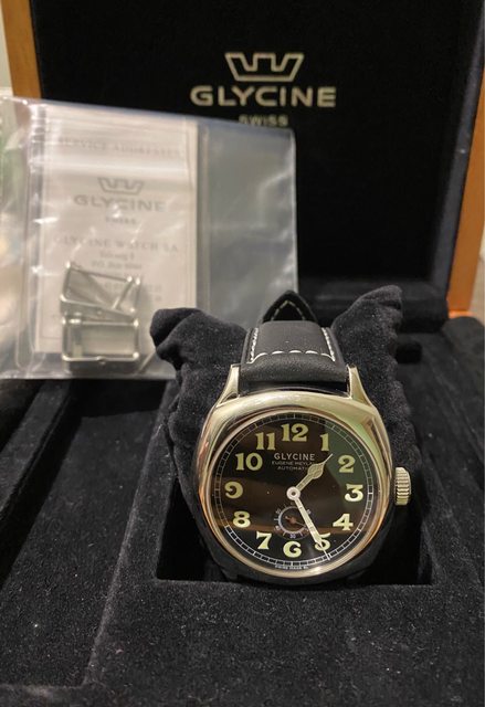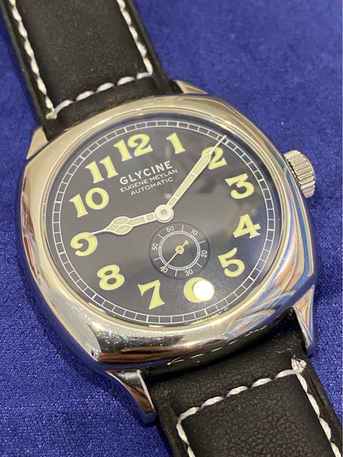 【商品名稱】Glycine Eugene Meylan 【商品價格】8560元(含店到 【新舊程度】如圖 【附件】單錶乙顆,副廠皮錶帶(原廠盒) ————————————————— 型號ref:3835 Glycine 推出了該公司第一款自動上鍊手錶的復刻品,且以冠星創辦人Eugene Meylan先 生為命名,向其引以為傲的傳統致敬。 Eugene Meylan 自動腕錶繼承了 1930 年代具有歷史意義的傑作的所有改進和令人愉悅的 細節,並為其提供了靈感,非常具有收藏價值。 解毒故出售,不議價請見諒 錶徑42mm(不含錶冠) ETA2895-2機芯 走時正常 圓頂藍寶石玻璃(泛藍鍍膜) 防水50m —————————————————-