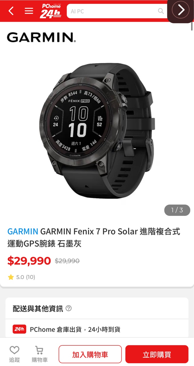 手錶型號:fēnix 7X Pro