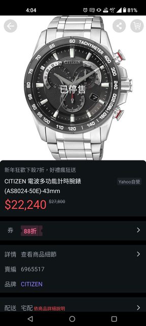 標題[賣錶] Citizen 光動能多功能電波計時錶 出清價