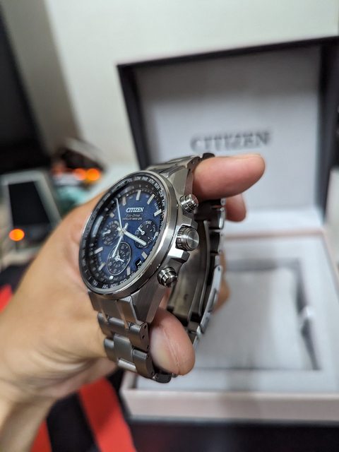 物品狀況:鈦金屬光動能衛星校時 錶徑44mm 兩地時間功能 錶殼錶帶有使用痕跡 約8成5