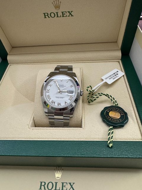 手錶型號:Datejust 41 白面、羅馬字、三板帶