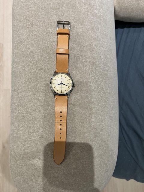 漂亮的錶奶油黃配上藍色太妃針錶徑也是理想的38mm