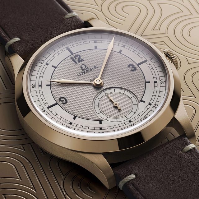 Omega新款:巴黎奧運2024青銅金BG 859 *採用CK 859殼形(39 mm x 11.7 mm) *錶殼採用O獨家的青銅金合金(Bronze Gold):37.5%黃金(9K) + 鈀金 + 銀 *BG合金穩定,不會像一般青銅氧化 *錶盤中央以Clous de Paris紋路裝飾,向法國工藝致敬 *手上鍊Calibre 8926、72 h動儲、防水30 m *非限量,定價為EUR 13,200或CHF 11,400 圖片出處:https://reurl.cc/z129gy https://i.imgur.com/Z13pPWD.jpeg