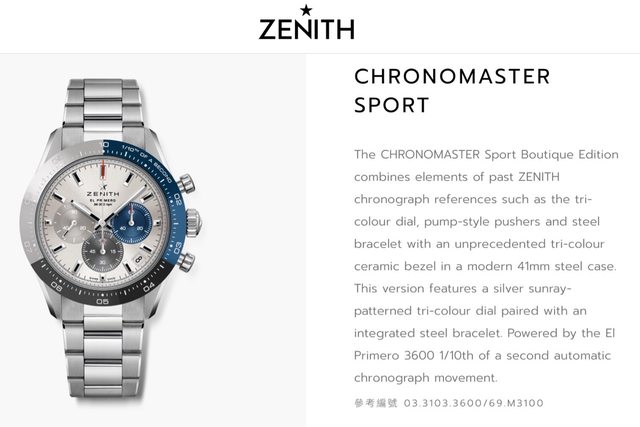 品牌名稱:Zenith chronomaster boutique edition